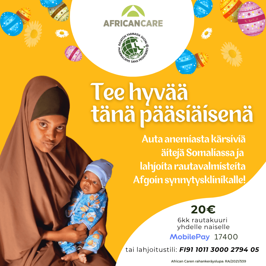 Rautakampanja toteutetaan yhteistyössä Rajaton Farmasia Suomi -järjestön ja Orionin kanssa. Ostamalla  läheisellesi Rautavalmisteen klinikalle tuet naisten terveyttä Somaliassa ja annat lahjan, jolla on kauaskantoiset vaikutukset. Ostettuasi aineettoman lahjan saat sähköpostiisi kortin, jonka voit lähettää eteenpäin tai tulostaa lahjan saajalle.